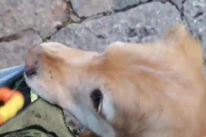 女子摸了摸路上偶遇的大金毛,结果被它拉去超市买火腿肠